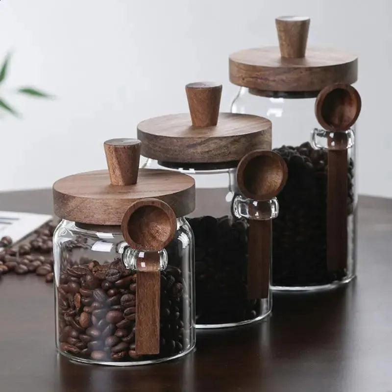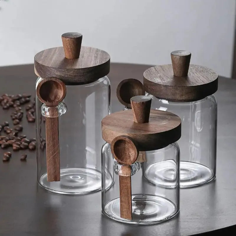 Airtight Glass Storage Jars with Wooden Lid & Spoon