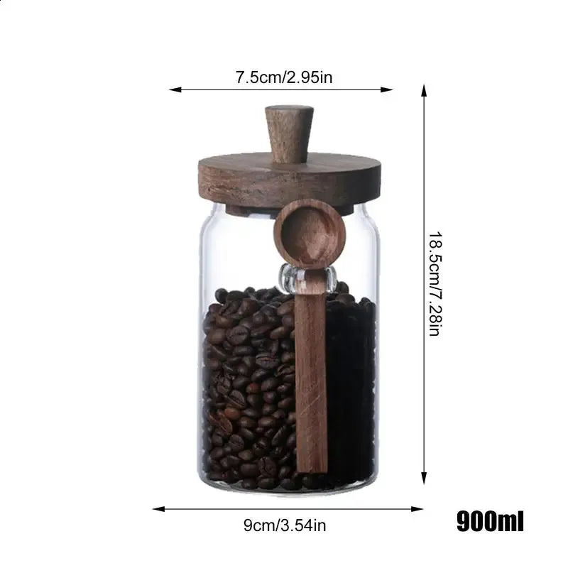 Airtight Glass Storage Jars with Wooden Lid & Spoon
