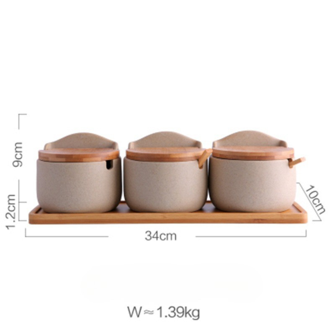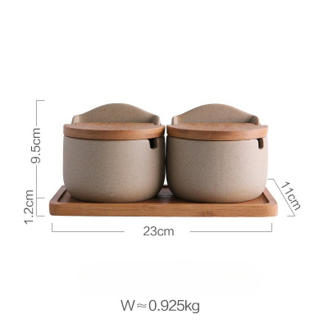 - Pack Includes: 1 Ceramic Jar, 1 Wooden Spoon, 1 Bamboo Tray (Two or Three Grid)