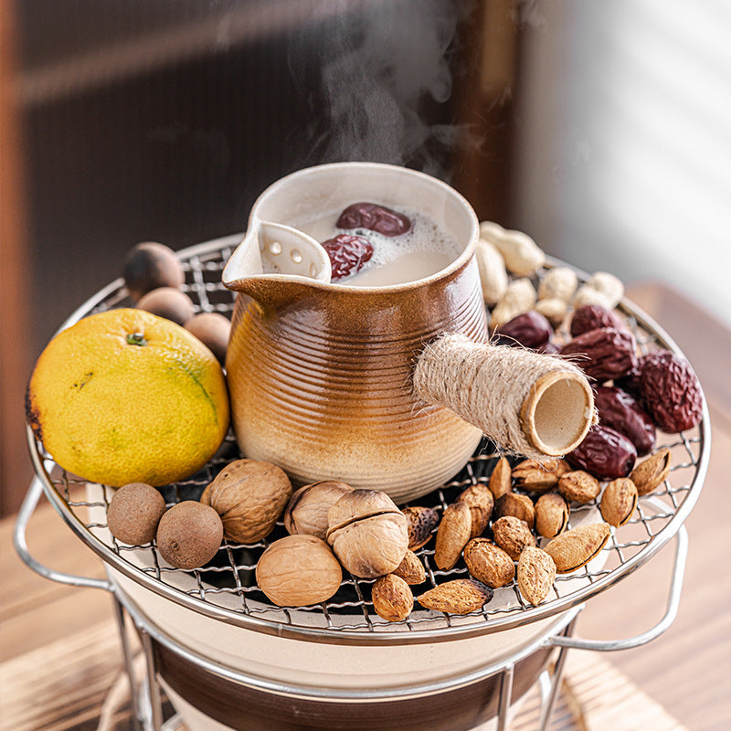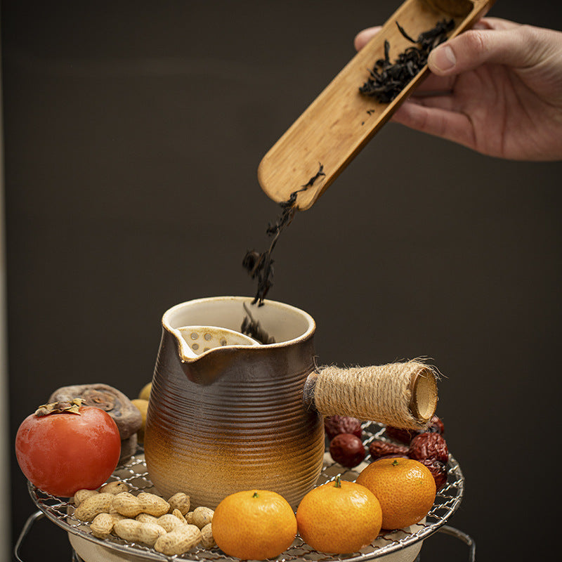 Elevate your tea-time experience with this elegantly handcrafted ceramic teapot, designed for style and function. With a 700ml capacity, it's ideal for people, making it perfect for cozy tea sessions at home or in the office. Made from durable ceramic, it ensures uniform heating and excellent heat retention. The earthy tone and classic design suit any kitchen or café setting, while the ergonomic rope-wrapped handle adds both comfort and charm.