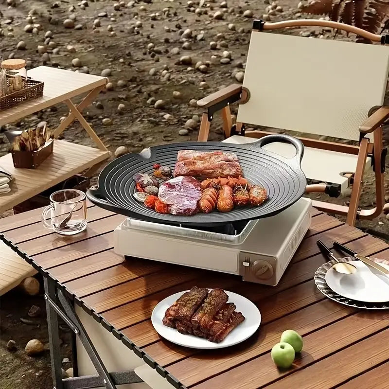 Whether you're grilling succulent meats, preparing crispy vegetables, or frying fish, this cast iron grill pan offers unparalleled versatility. Use it as a BBQ grill plate, chicken fryer, or fish tawa for perfectly cooked dishes. Its heavy-duty design makes it ideal for camping trips and home kitchens alike.