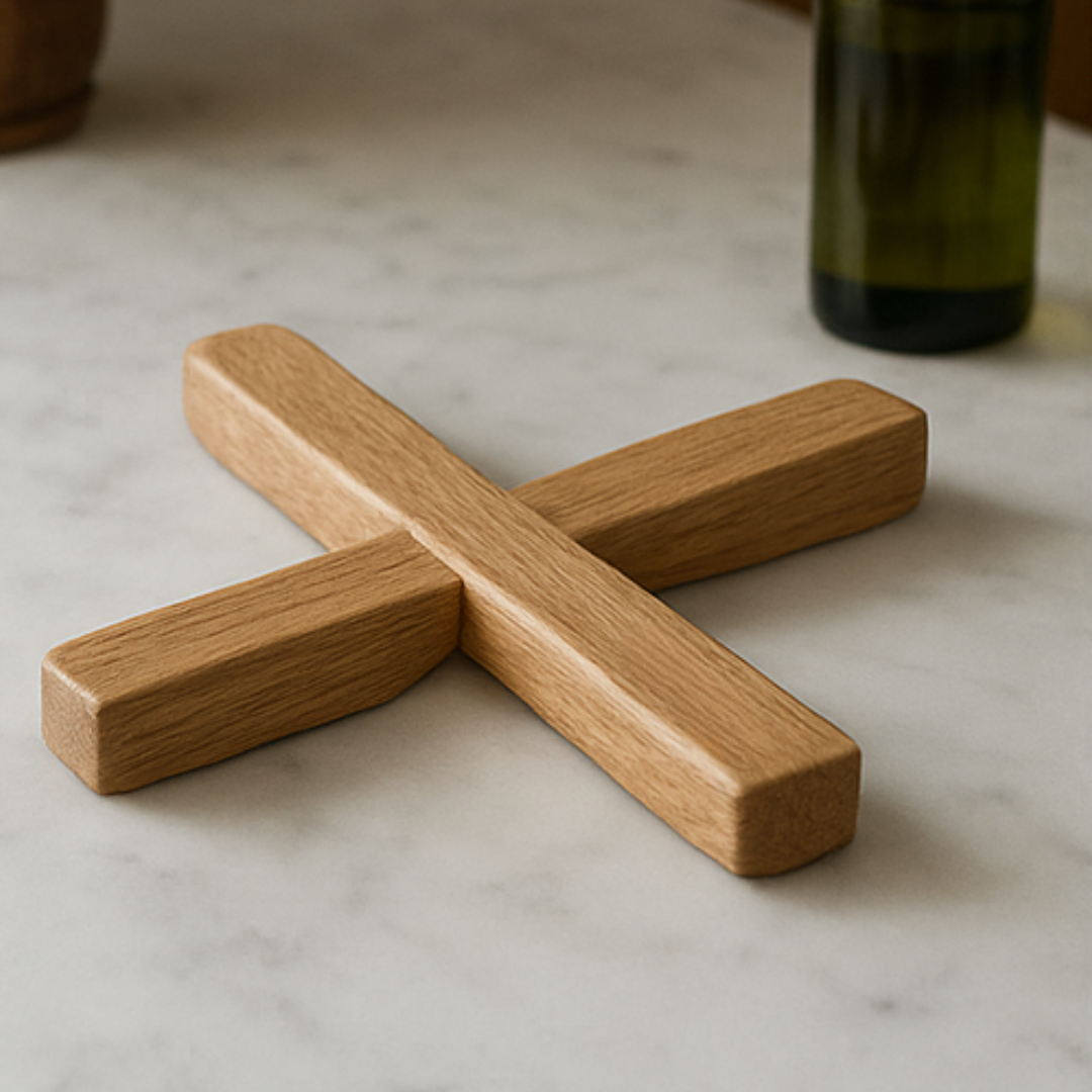 Add a stylish touch to your kitchen or dining table with this multifunctional magnetic trivet. Designed with high-quality natural wood and silicone-coated nylon, it can be used in a cross or separated layout to fit different pan sizes. Built-in strong magnets keep the trivet attached to cookware while moving. With heat resistance up to 425°F and a smooth polished finish, it blends functionality with modern design. Available in elegant wood tones and six color variants.
