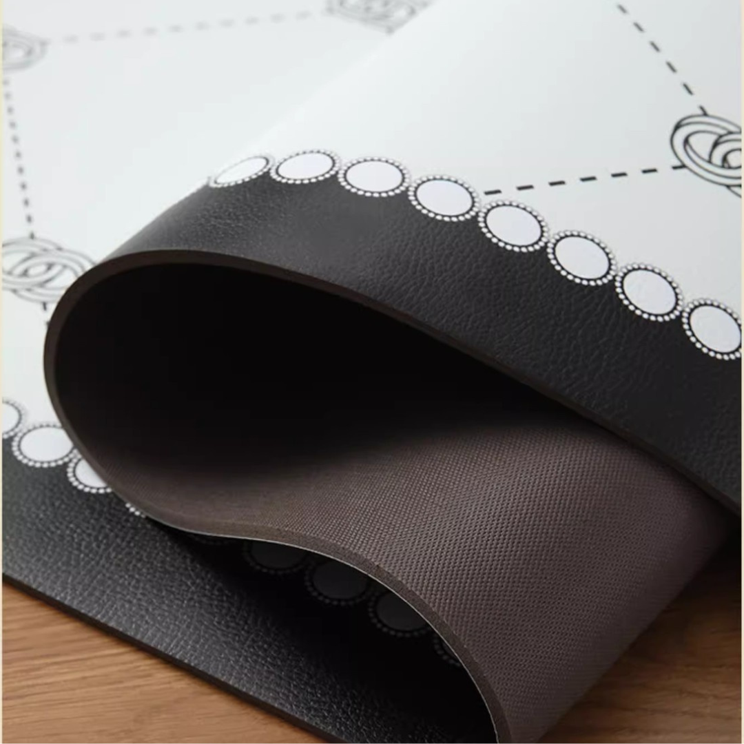 Add elegance and comfort to your space with this French Luxury Anti-Slip Floor Mat. Crafted with high-quality elastic fabric for a soft and comfortable feel, it reduces foot pressure. The non-slip rubber bottom ensures stability, preventing slips and falls. Its scratch-resistant and wear-resistant design makes it durable and long-lasting. With a stain-resistant leather surface, it's easy to clean and maintain. Perfect for entryways, living rooms, or offices, this mat enhances any interior décor.
