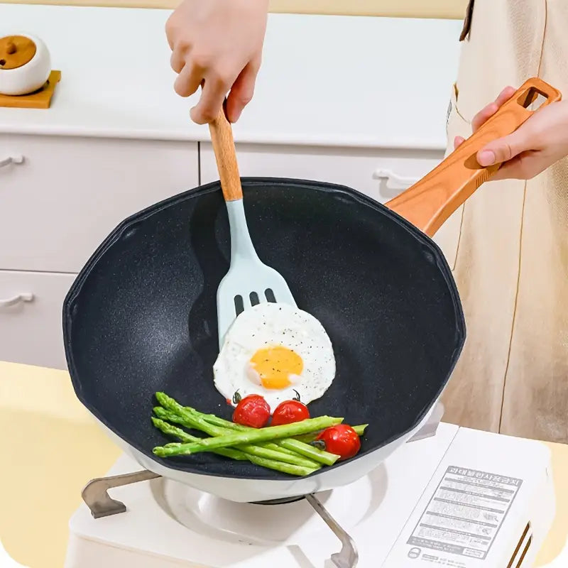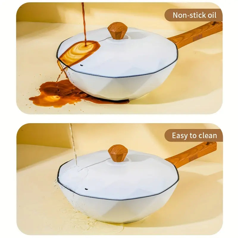 Introducing the Non-Stick Octagonal Frying Pan, a culinary essential designed to elevate your cooking experience to new heights. Crafted from premium aluminum alloy, this pan boasts a sturdy structure ensuring longevity and durability. Its innovative design facilitates fast and uniform heat transfer, guaranteeing stable heat distribution throughout your cooking process. With ample capacity, it caters to the needs of even the largest families, promising an unparalleled culinary adventure.