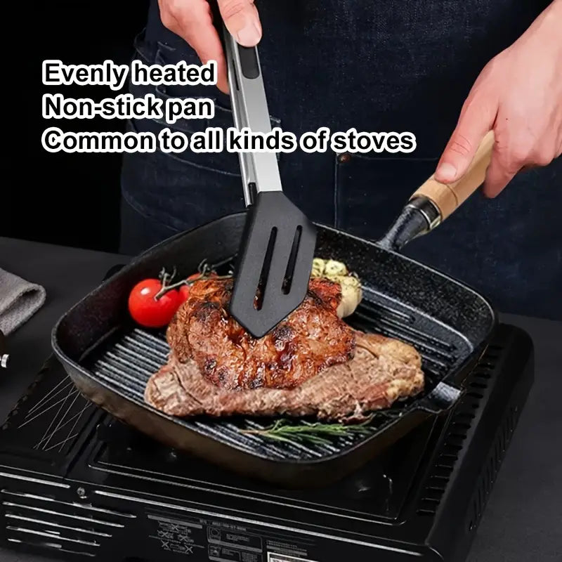 Made from thick, pure cast iron, this pan ensures even heat distribution for consistent cooking results. Ideal for grilling steaks, vegetables, and more while retaining heat for longer.