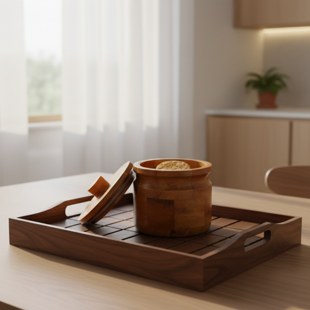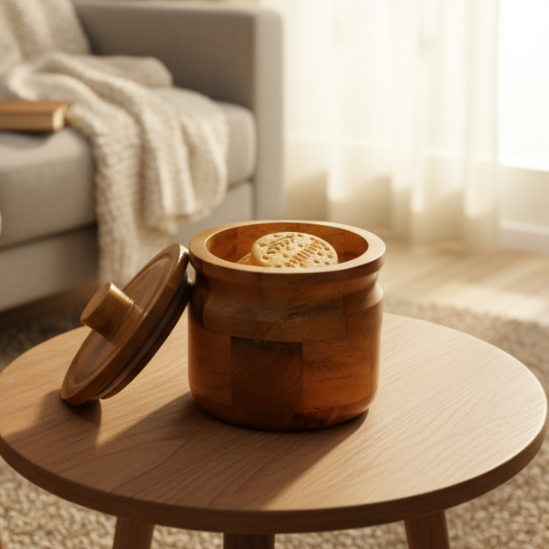 Premium Multi-Purpose Akasia Wooden Cookie Jar - 200ml Capacity