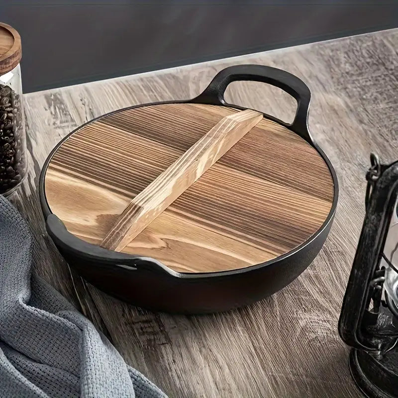 Rustic-Wood Non-Stick Cast Iron Simmer Pot