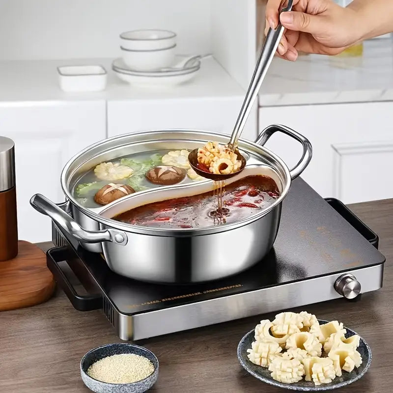 Enjoy Two Tastes: Made of durable stainless steel, this pot allows you to cook two flavors simultaneously, catering to different preferences in one pot.