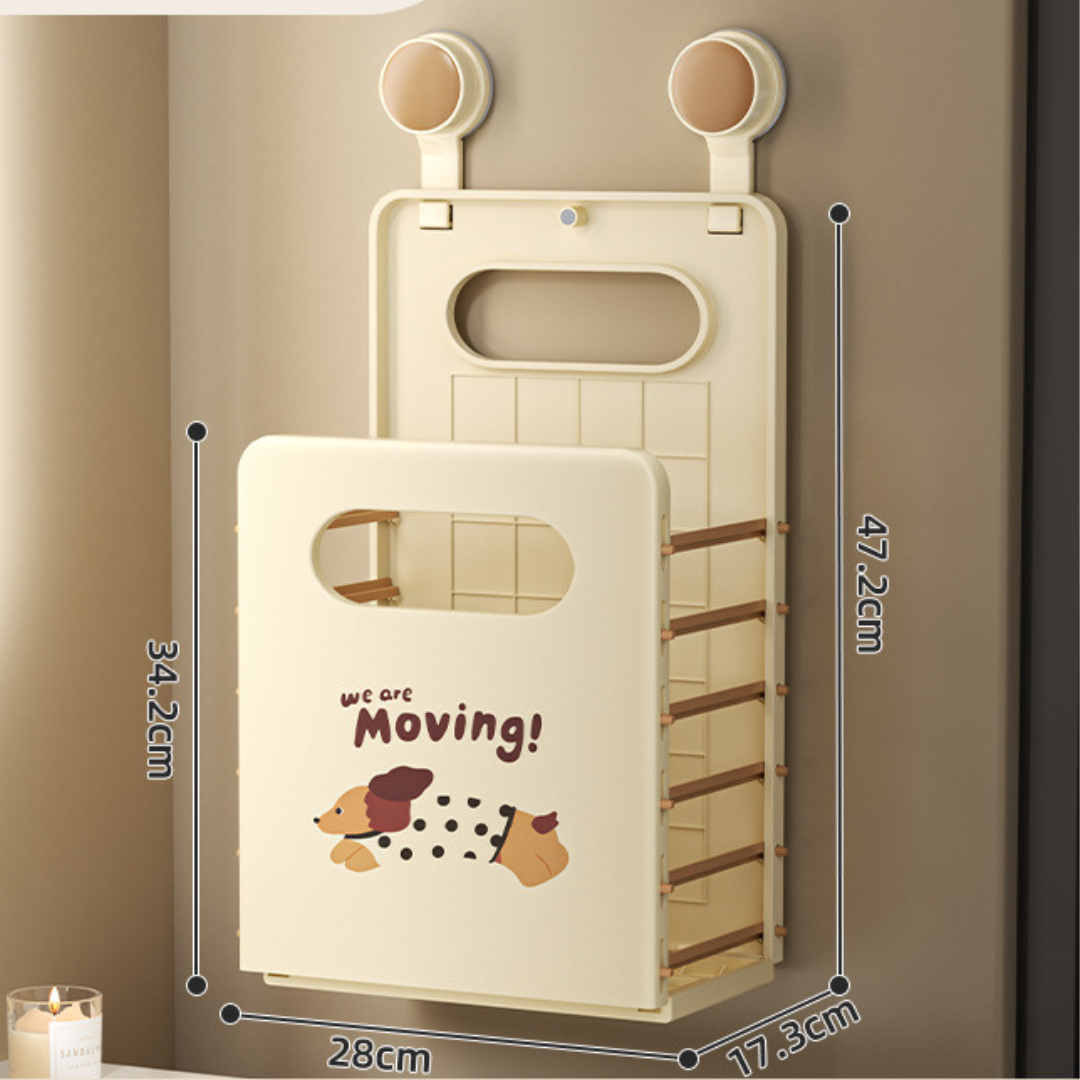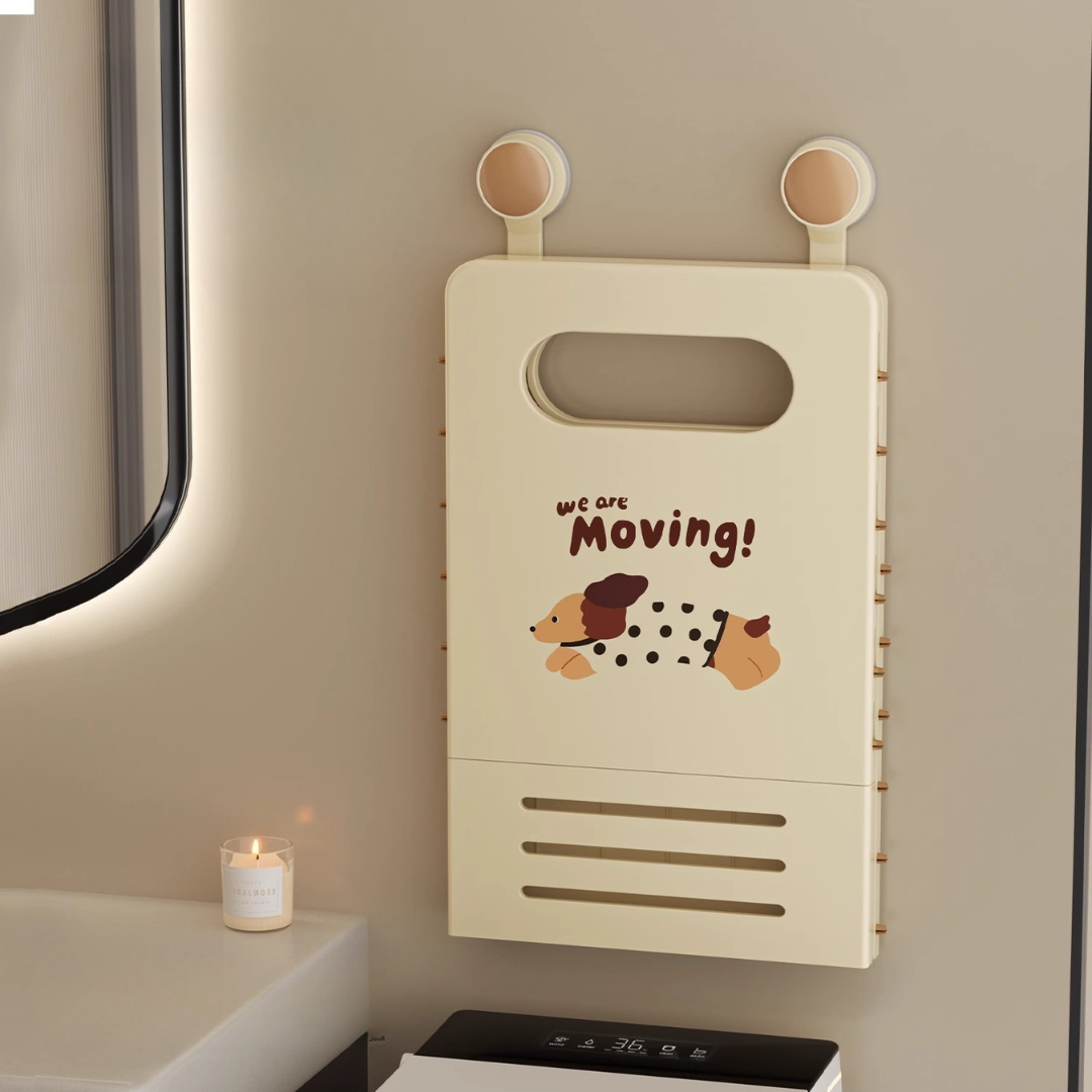 Keep your space tidy and stylish with this wall-mounted folding laundry basket. Made from high-quality PP material, this durable and lightweight basket is perfect for storing clothes, towels, or toys. Its vacuum adsorption technology allows for easy installation without drilling, while the foldable design saves space when not in use. The integrated carrying handle ensures effortless transport, and its modern pet-themed prints add charm to any bathroom or laundry area.